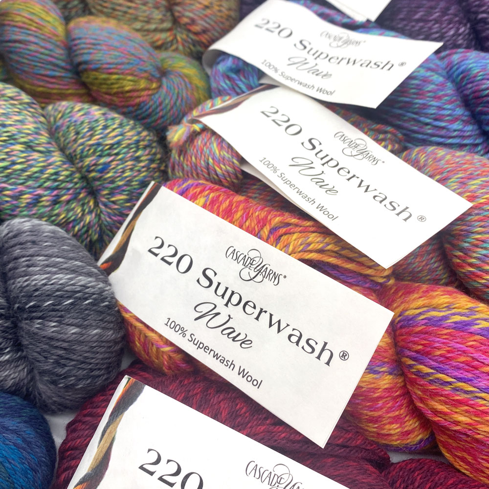 220 Superwash® Wave is Cascade’s classic 220 Superwash® with a new color shift effect. The color repeats are very long with some high contrast and tonal colorways.
