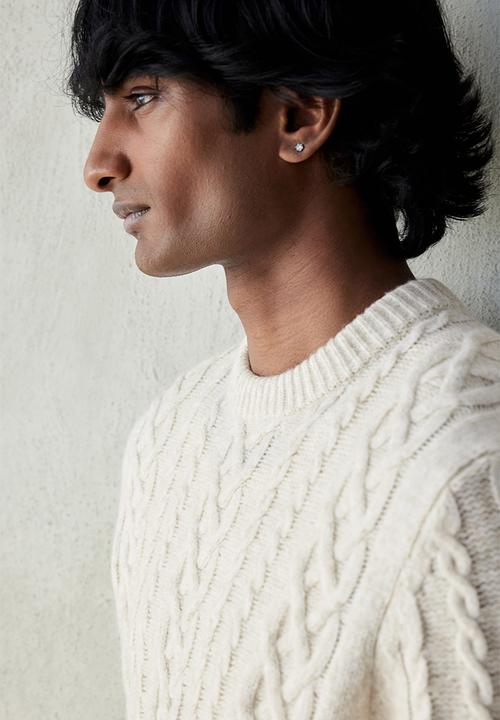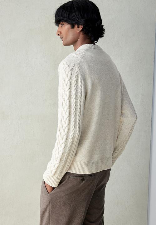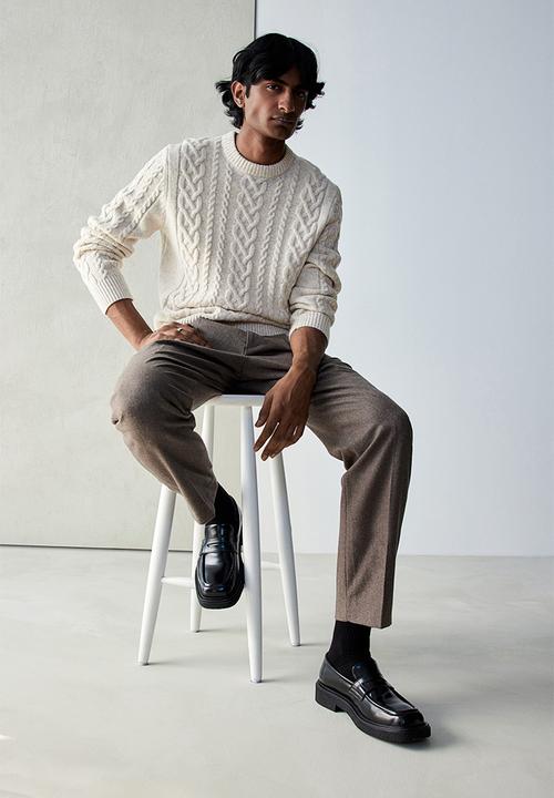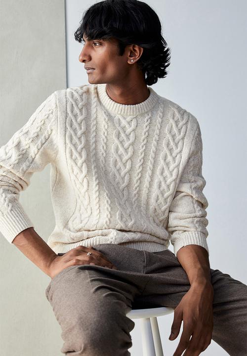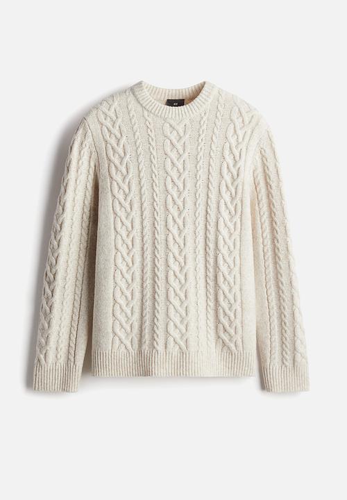 Jumper in a soft cable knit with a round, rib-trimmed neckline and ribbing at the cuffs and hem. Regular fit for comfortable wear and a classic silhouette.