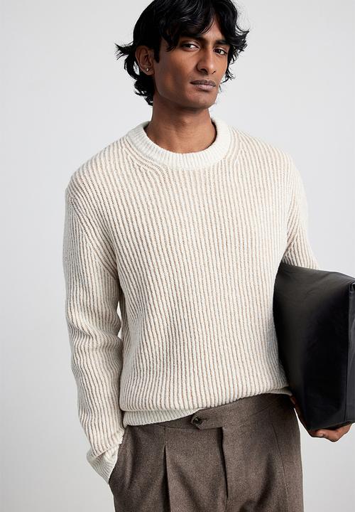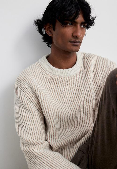 Regular fit rib-knit jumper – light beige